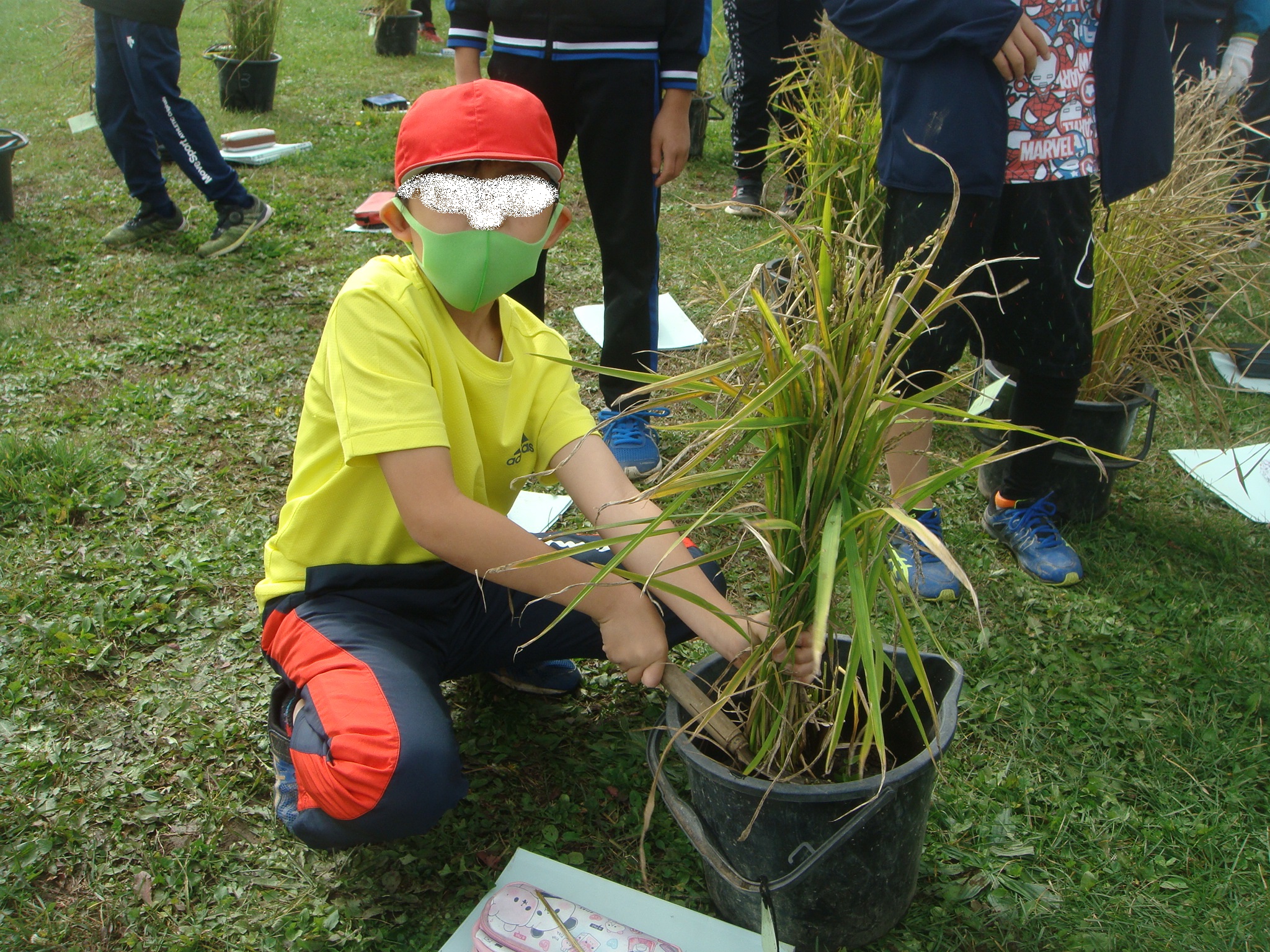 学校運営協議会会長のご協力のもと、3、5年生が農業体験をしました。バケツ稲育成、田植え体験、稲刈りなど、直接体験をして農業・食物について学習を深めることができました。